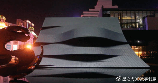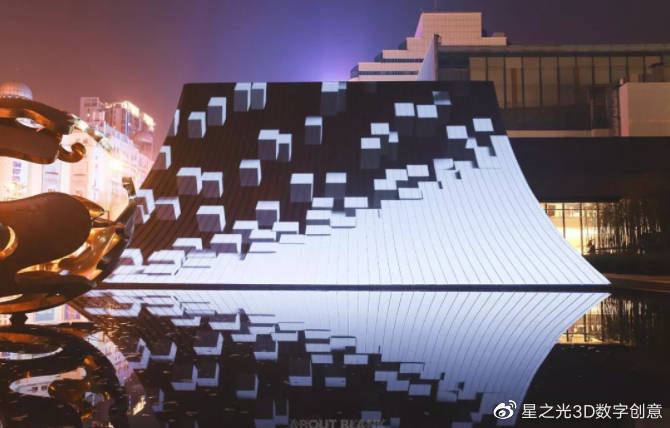 “暮色量子”的光影表演是以現(xiàn)代都市美學(xué)的視角為基礎(chǔ),以建筑的概念設(shè)計為基礎(chǔ)。