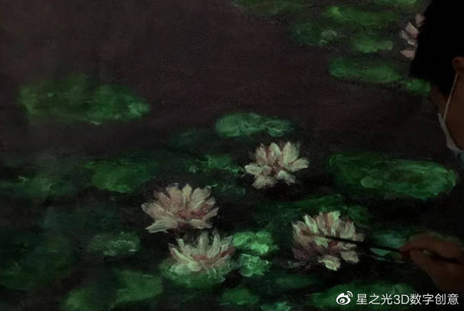 影像、音樂(lè)、燈光、氣味,一場(chǎng)視覺(jué)、聽(tīng)覺(jué)、嗅覺(jué)、觸覺(jué)、味覺(jué)的全方位的視覺(jué)盛宴,讓莫奈的名作在這一刻猶如重獲新生。