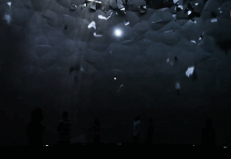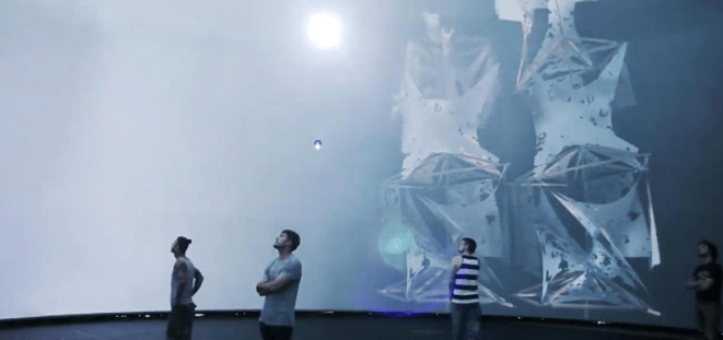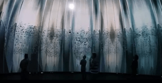 整個(gè)展示的場(chǎng)地呈現(xiàn)出的是一種特殊的穹頂結(jié)構(gòu),觀眾處于一個(gè)封閉的空間內(nèi),可以感受各種各樣的視覺效果的變化。