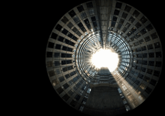 Factory Fifteen 的作品《繭》采用的是一個(gè)巨大的 360o 環(huán)形的視頻裝置。
