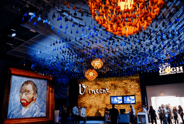 《梵高·身臨其境》通過(guò)紐約的50萬(wàn)立方英尺的投影將藝術(shù)家的杰作帶入生活,成為北美最受歡迎的體驗(yàn)場(chǎng)景。
