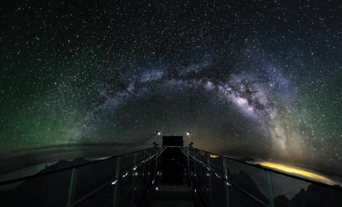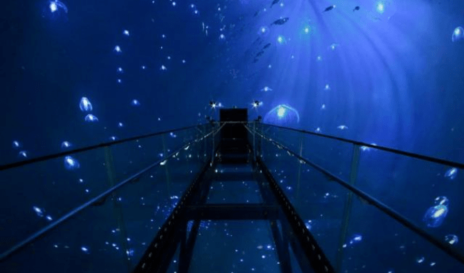 當游客們走進球體之后,會看到一段透明的玻璃觀景橋穿過球體內(nèi)部,游客們只需站在橋上,便可縱觀“全局”。