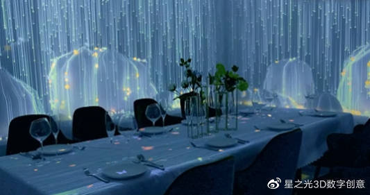 全息餐廳的裝飾方式多種多樣,如環(huán)繞全息投影、水幕動畫等,給人留下了深刻的印象。讓您一邊欣賞美味佳肴,一邊欣賞美景。