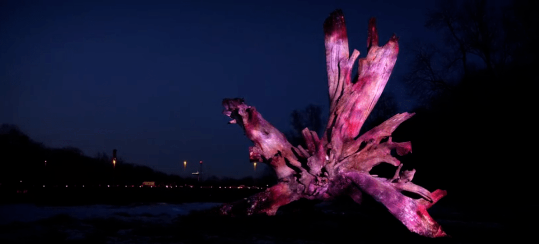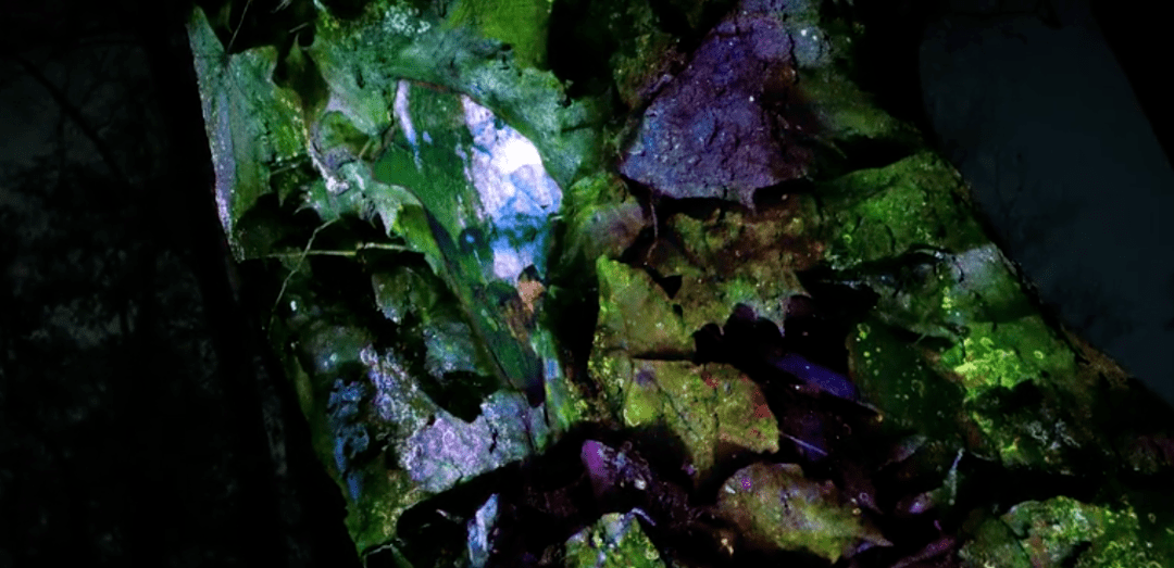 在Philipp Frankyou的作品中,他巧妙地在自然界的浮木、樹干、巖石上面進行投影映射。