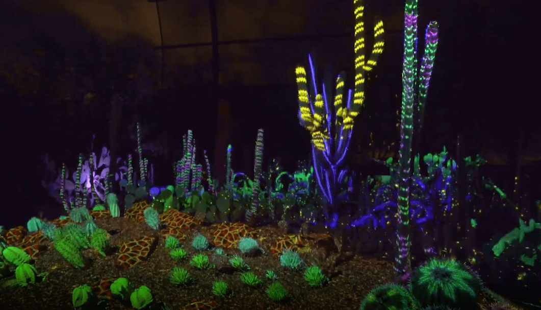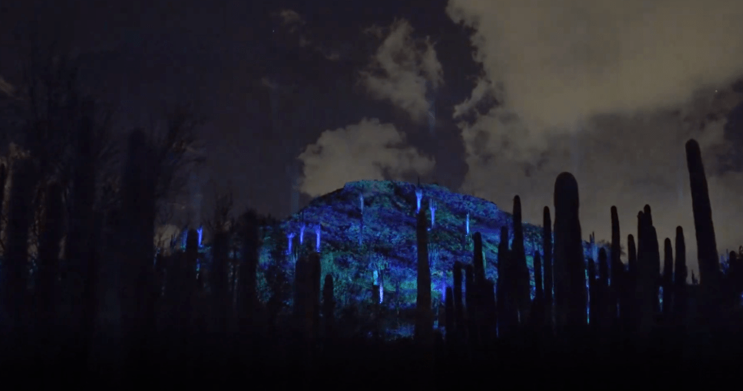 Desert Chorale利用一片生長著巨柱仙人掌的小山坡創(chuàng)作展覽的內(nèi)容,每隔20分鐘就會上演一次光影表演。