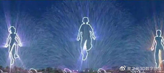霧幕投影利用霧幕墻作為投影圖像的載體,游客可以自由地在圖像中穿行,實(shí)現(xiàn)了虛幻的效果,使觀眾有一種虛幻的、夢(mèng)幻的感覺(jué)。