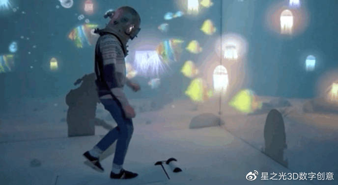 這個工作使用了投射技術(shù),產(chǎn)生了許多很有意思的效果,它確實(shí)凸顯了這項(xiàng)技術(shù)的潛力。觀看演員們與燈光互動-下樓梯,伸手觸摸并不存在的門把手,乘地鐵,漫游海底,跳進(jìn)未知的山洞…盡情享受這一旅程!