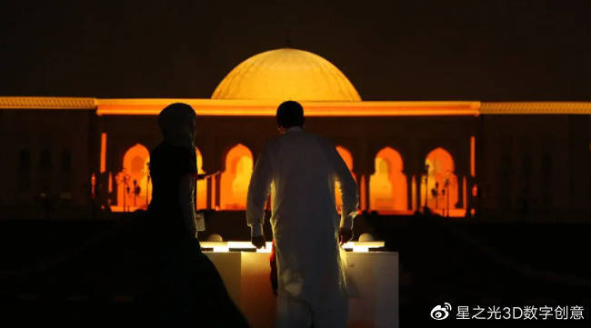 “Maestro”是由 Tigrelab Art的多媒體設(shè)計公司在沙迦燈光節(jié)上展出,觀眾可以在一個像“魔法球”一樣的操作平臺上制作三種不同的投影儀:流暢的紋理模式不斷波動、分散,呈現(xiàn)出一幅充滿詩情畫意的景象;阿拉伯風(fēng)格的一種復(fù)雜而又古老的藝術(shù)形式。