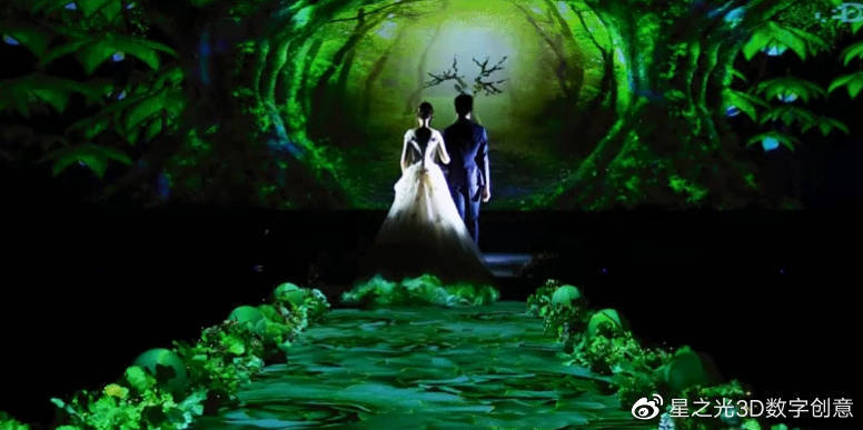 對(duì)于一些特殊的場(chǎng)合,比如婚禮,搭建一個(gè)互動(dòng) T臺(tái)和一個(gè)婚禮投影,新人們的一舉一動(dòng)都會(huì)隨著燈光的改變而發(fā)生變化,充滿了科技感,對(duì)于年輕一代來說,有著很大的吸引力。