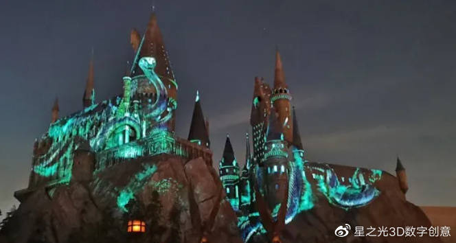 建筑投影運用在旅游景點、游樂園等地建設室外建筑中,既能吸引游客,又能刺激消費;