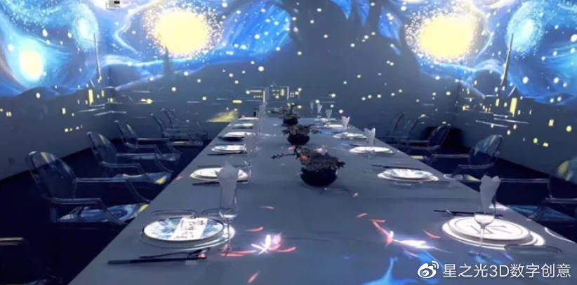 所謂5D全息餐廳就是一種全新的用餐空間,可以隨意穿梭于多種主題場景,不同場景的主題轉(zhuǎn)換,與裸眼3D視覺技術(shù)相結(jié)合,仿若置身于海洋、星空、城堡、花海之中。