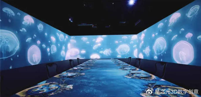 5D全息餐廳與傳統(tǒng)的餐廳空間不同,5D全息投影餐廳采用了交互投影技術(shù),將原本靜止的餐飲空間變成了一個動態(tài)的視覺,讓消費者在不同的場景中,感受到了一種沉浸式的交互式體驗。