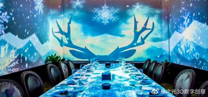 全息光影餐廳運用交互式投影技術(shù),將墻面、地面、桌面等進(jìn)行融合,形成光影交互的空間,營造出一種可視化的消費場景,為品牌創(chuàng)造價值與影響力提供了有力的支撐。